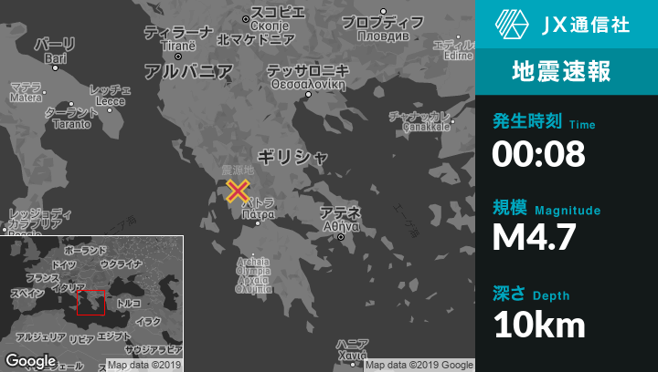 | 震源地 | ギリシャのKrikellosから東4kmの地点 |