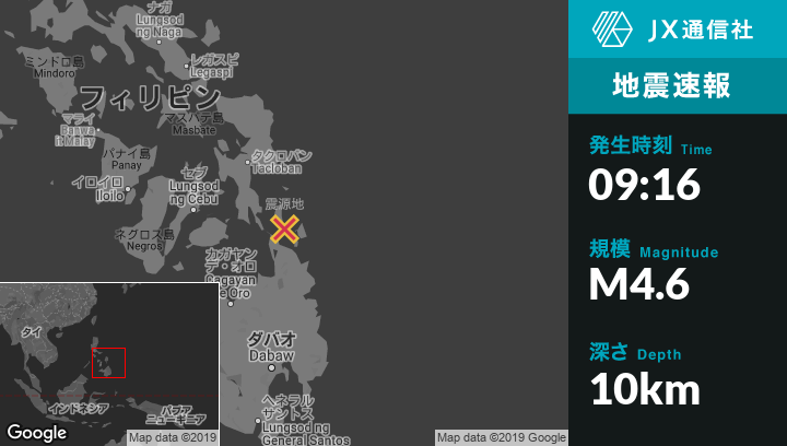 | 震源地 | フィリピンのCagdianaoから北北東16kmの地点 |