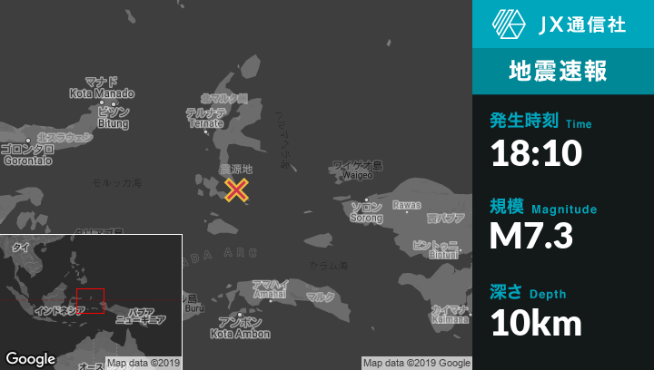 | 震源地 | インドネシアのLaiwuiから北北東102kmの地点 |