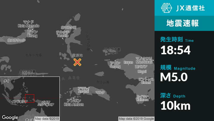 | 震源地 | インドネシアのLaiwuiから東北東101kmの地点 |