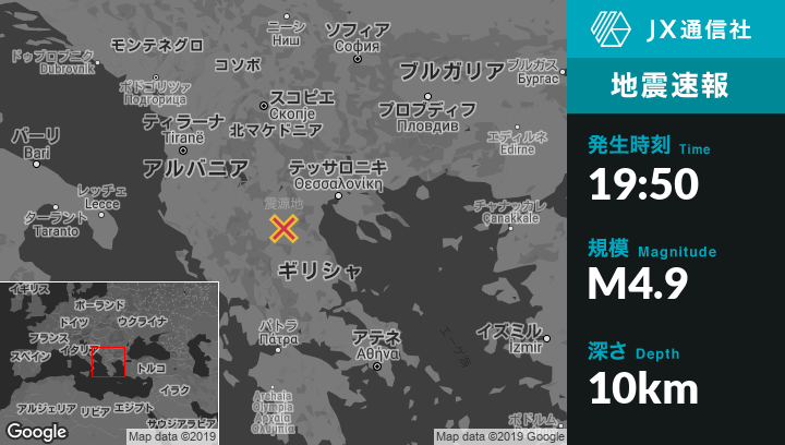 | 震源地 | ギリシャのAno Komiから東南東1kmの地点 |