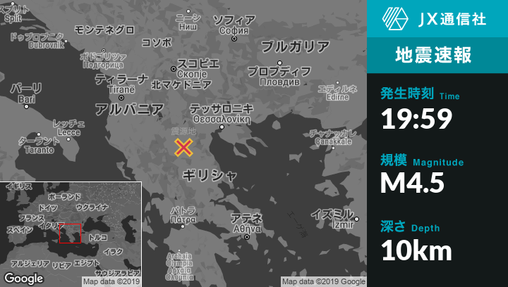 7月14日 19:59頃、ギリシャのKozaniから南南西6kmの地点でM4.5の地震がありました。
