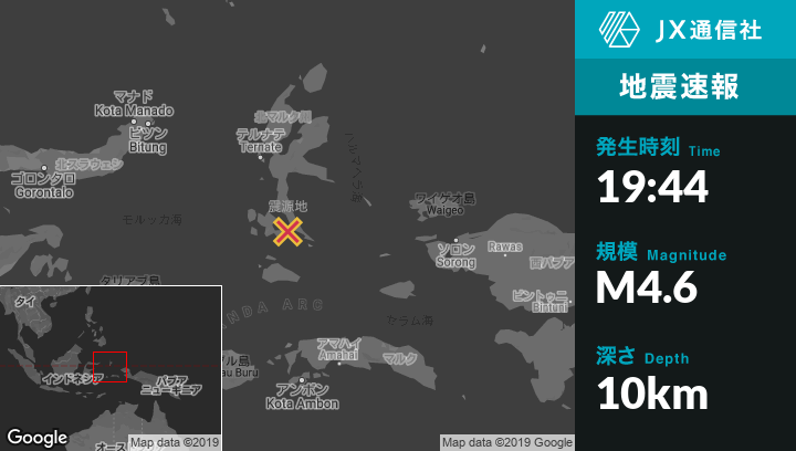 | 震源地 | インドネシアのLaiwuiから北北東88kmの地点 |