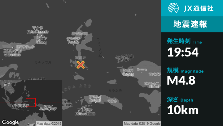 | 震源地 | インドネシアのLaiwuiから北北東93kmの地点 |