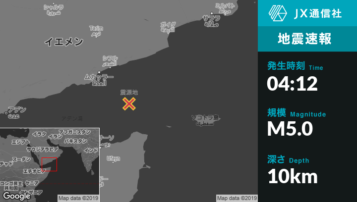 | 震源地 | ソマリアのBereedaから北北西171kmの地点 |