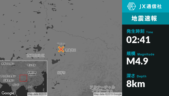 | 震源地 | 中国のPagnagから南西77kmの地点 |