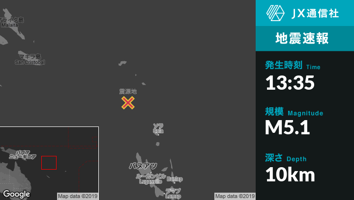 | 震源地 | ソロモン諸島のLataから南南東184kmの地点 |