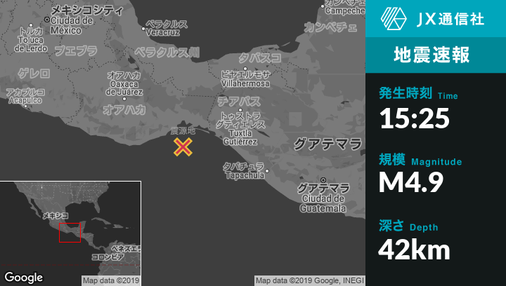 | 震源地 | メキシコのSan Mateo del Marから南南東50kmの地点 |