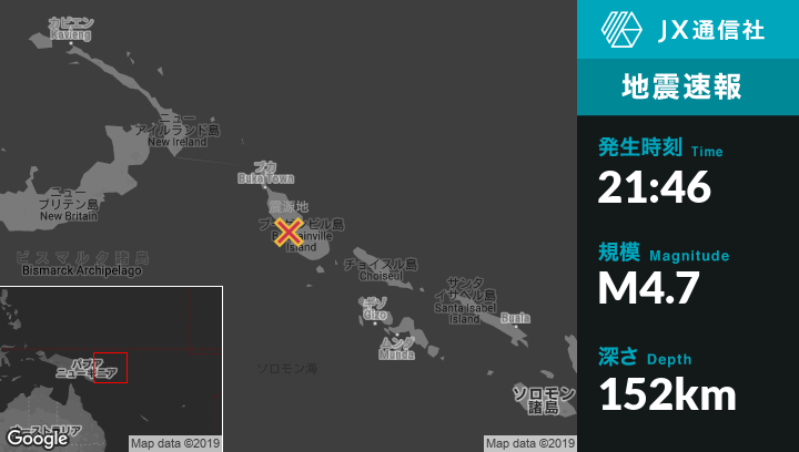 | 震源地 | パプアニューギニアのPangunaから西北西41kmの地点 |