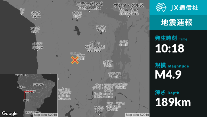 | 震源地 | ボリビアのUyuniから南西63kmの地点 |