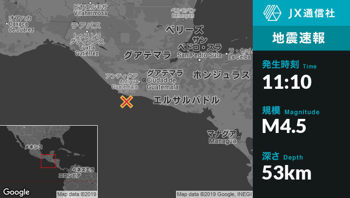 | 震源地 | グアテマラのLa Gomeraから南西43kmの地点 |