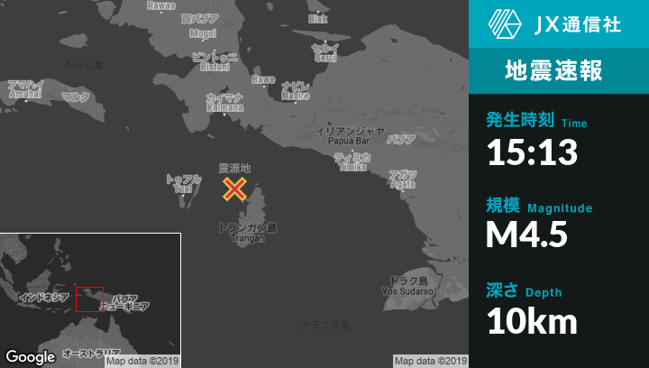 | 震源地 | インドネシアのDoboから北北西50kmの地点 |