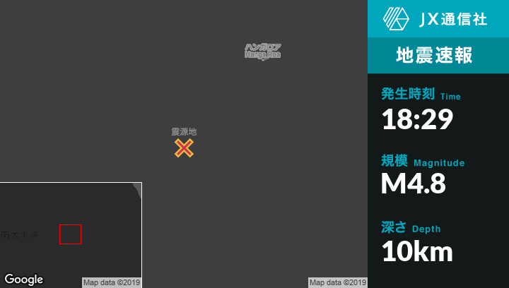 7月20日 18:29頃、チリのHanga Roaから南西350kmの地点でM4.8の地震がありました。