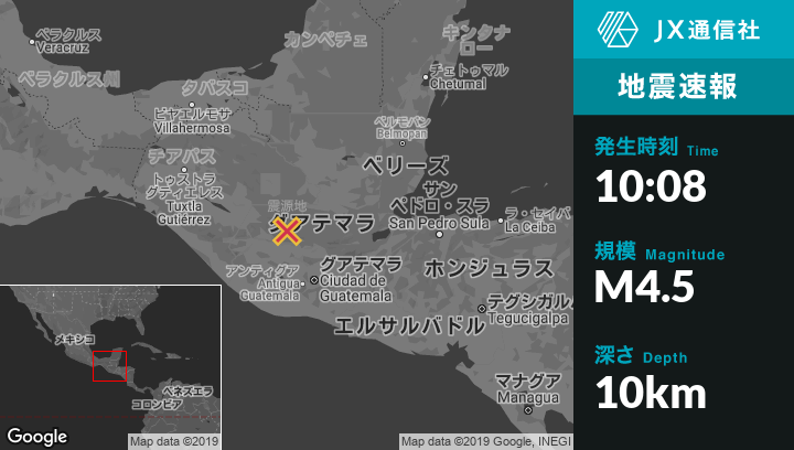 | 震源地 | グアテマラのSan Luis Ixcanから南南東11kmの地点 |