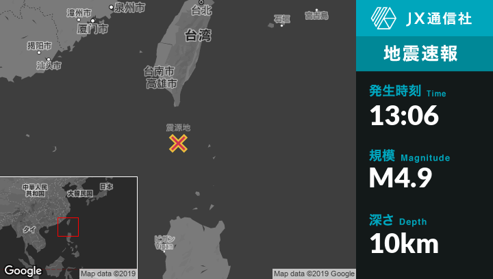 7月22日 13:06頃、フィリピンのItbayatから西106kmの地点でM4.9の地震がありました。