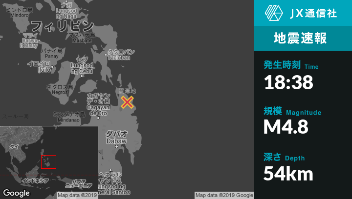 | 震源地 | フィリピンのParangから南西1kmの地点 |
