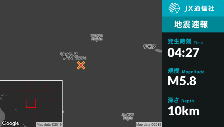 8月23日 04:27頃、ウォリスとフツナのSigaveから東南東108kmの地点でM5.8の地震がありました。