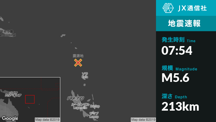 | 震源地 | バヌアツのSolaから北北西154kmの地点 |