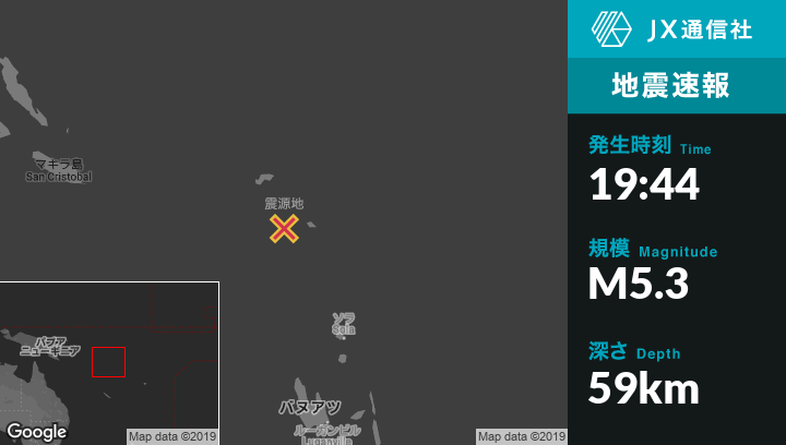 | 震源地 | ソロモン諸島のLataから南南東113kmの地点 |