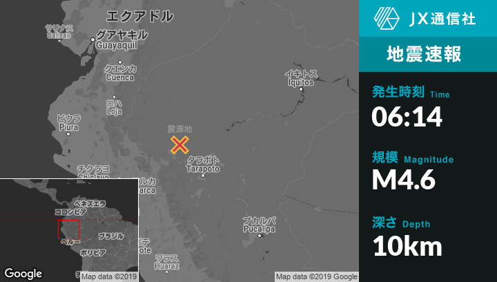 8月24日 06:14頃、ペルーのRiojaから北72kmの地点でM4.6の地震がありました。