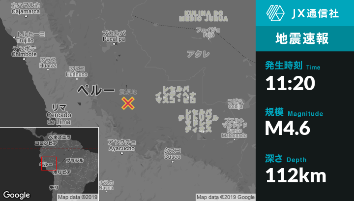 | 震源地 | ペルーのMazamariから北東80kmの地点 |
