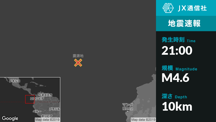 | 震源地 | コスタリカのIsla del Cocoから南東431kmの地点 |