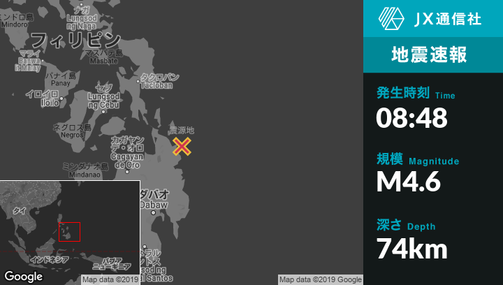 | 震源地 | フィリピンのCortesから東北東18kmの地点 |