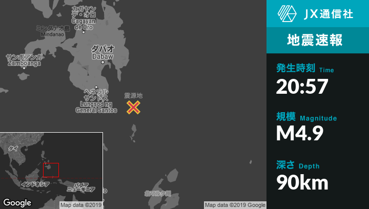| 震源地 | フィリピンのPondaguitanから南南東125kmの地点 |