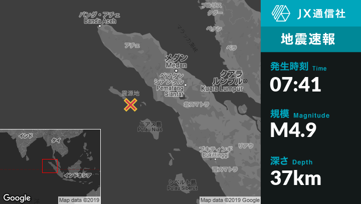| 震源地 | インドネシアのSinabangから南東43kmの地点 |