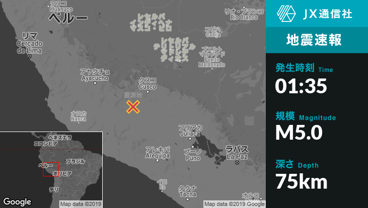 | 震源地 | ペルーのAbancayから南南東55kmの地点 |