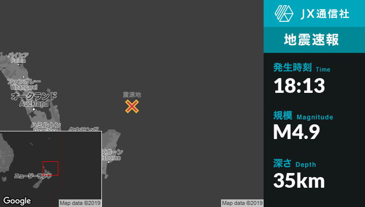 9月04日 18:13頃、ニュージーランドのOpotikiから北東221kmの地点でM4.9の地震がありました。