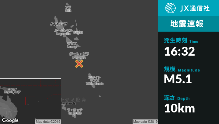 | 震源地 | バヌアツのPort-Vilaから南12kmの地点 |