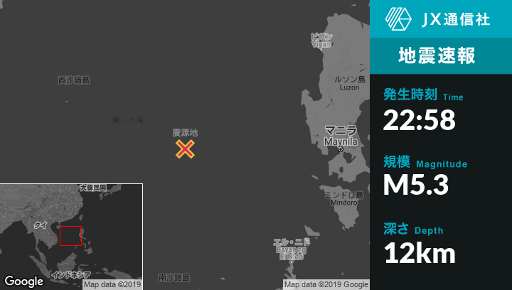 | 震源地 | フィリピンのPalauigから西409kmの地点 |