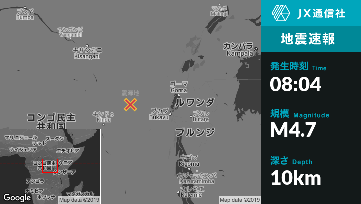 | 震源地 | コンゴ民主共和国のKinduから北東166kmの地点 |