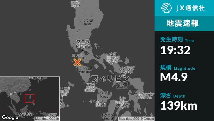 | 震源地 | フィリピンのCalataganから西7kmの地点 |