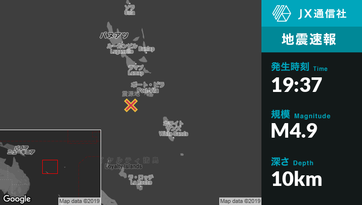 | 震源地 | バヌアツのPort-Vilaから西南西84kmの地点 |