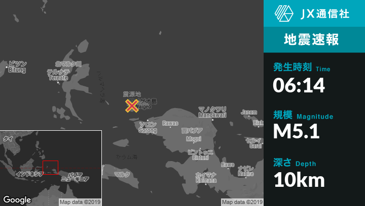 | 震源地 | インドネシアのSorongから北西113kmの地点 |