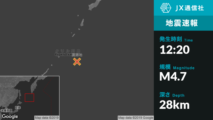 | 震源地 | ロシアのSevero-Kuril'skから南南西366kmの地点 |