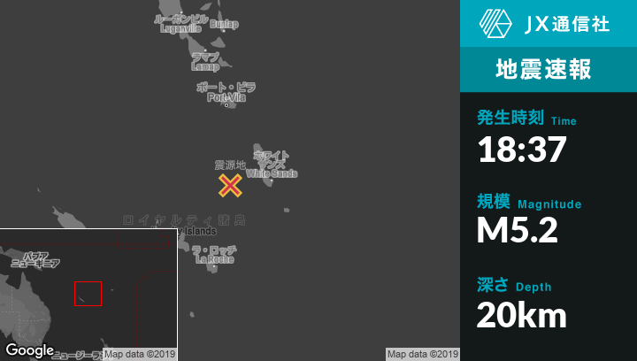| 震源地 | バヌアツのIsangelから西88kmの地点 |