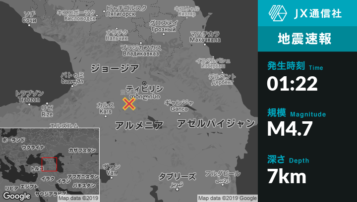 9月11日 01:22頃、アルメニアのTashirから西11kmの地点でM4.7の地震がありました。