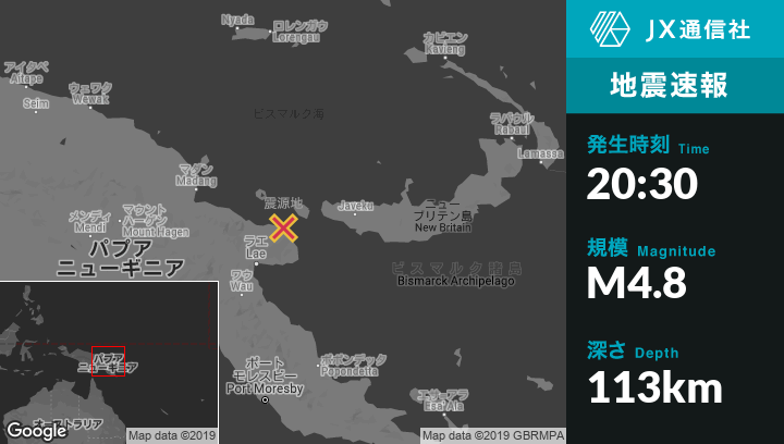 | 震源地 | パプアニューギニアのFinschhafenから北北西87kmの地点 |