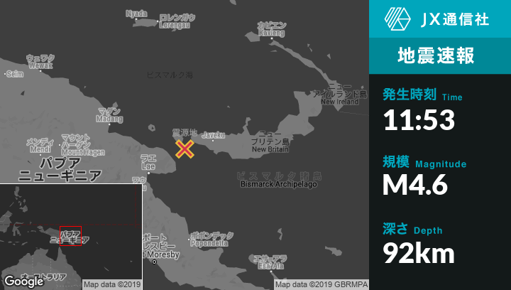 | 震源地 | パプアニューギニアのFinschhafenから北北東86kmの地点 |