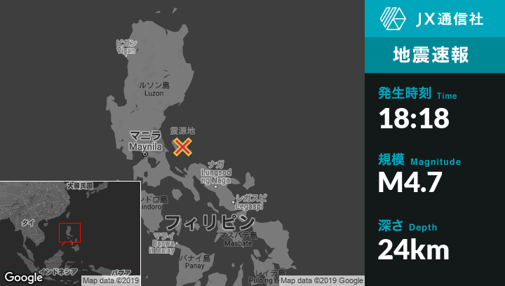 | 震源地 | フィリピンのCarlaganから東南東12kmの地点 |