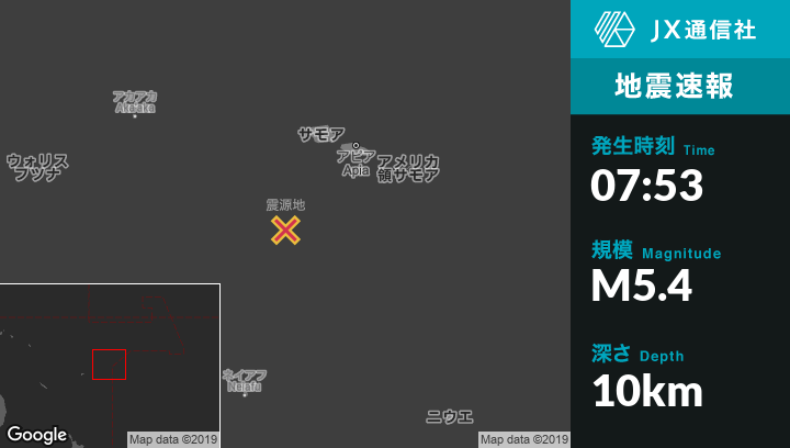 9月14日 07:53頃、トンガのHihifoから北東89kmの地点でM5.4の地震がありました。
