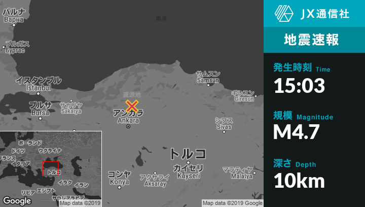 9月14日 15:03頃、トルコのOrtaから北西9kmの地点でM4.7の地震がありました。
