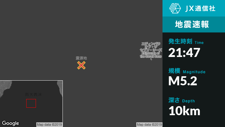 | 震源地 | セントヘレナのEdinburgh of the Seven Seasから西435kmの地点 |
