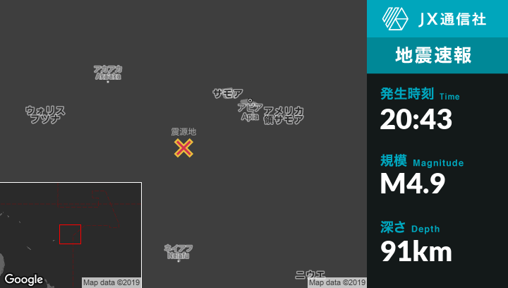 | 震源地 | トンガのHihifoから北87kmの地点 |