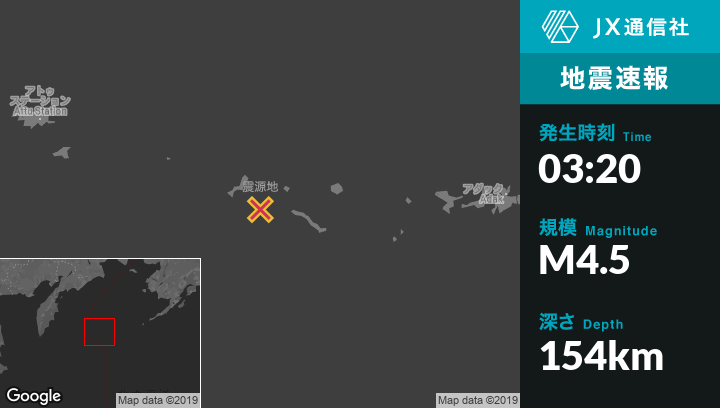 | 震源地 | アラスカのLittle Sitkin Islandから西南西45kmの地点 |