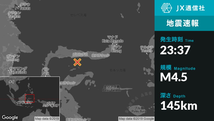 | 震源地 | インドネシアのTilamutaから南南西34kmの地点 |