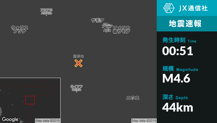 9月18日 00:51頃、トンガのHihifoから南64kmの地点でM4.6の地震がありました。